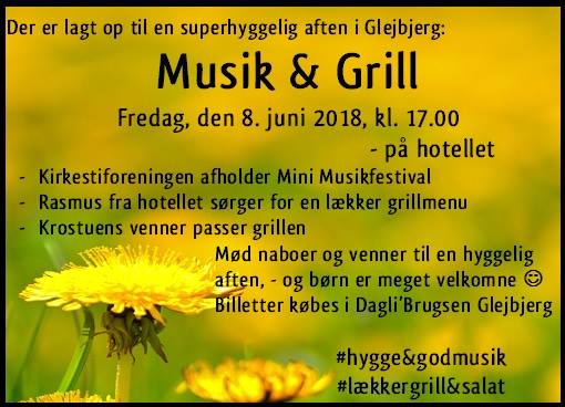 Kom med til Musik & Grill aften på Hotellet - billetter kan købes i Dagli' Brugsen Glejbjerg