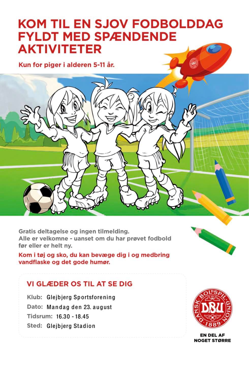 DBUs pigeraket lander på Glejbjerg Stadion onsdag d. 9. august kl. 17.00. For alle 5 - 11 årige piger uanset fodbolderfaring. Deltagelse er gratis.