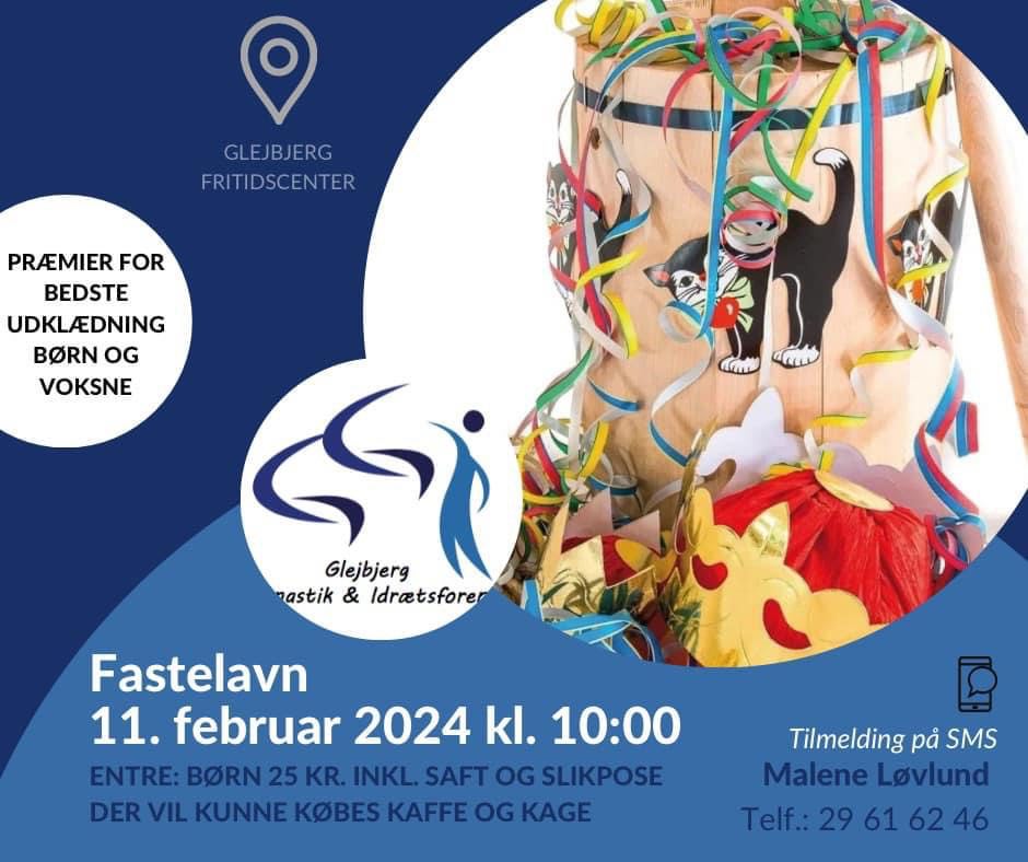 Fastelavnsfest. Tilmelding på SMS 29 61 62 46. Sted: Glejbjerg Fritidscenter Arrangør: Glejbjerg Gymnastisk & Idrætsforening