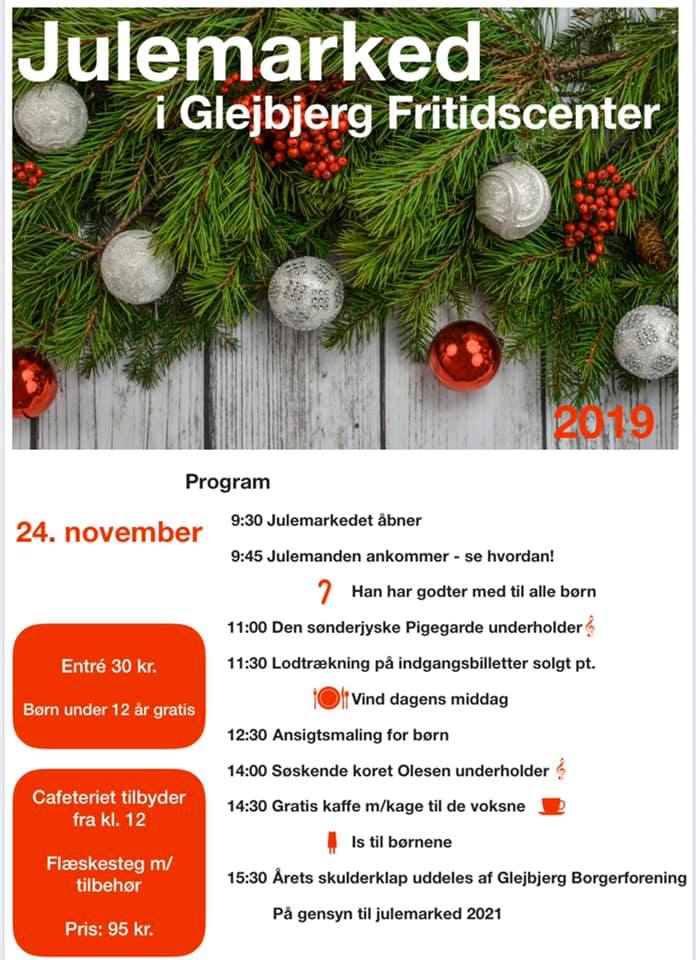 Julemarked i Glejbjerg Fritidscenter 24. november Arr.: Glejbjerg Fritidscenters bestyrelse Sted: Glejbjerg Fritidscenter